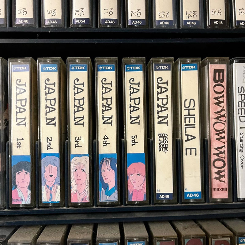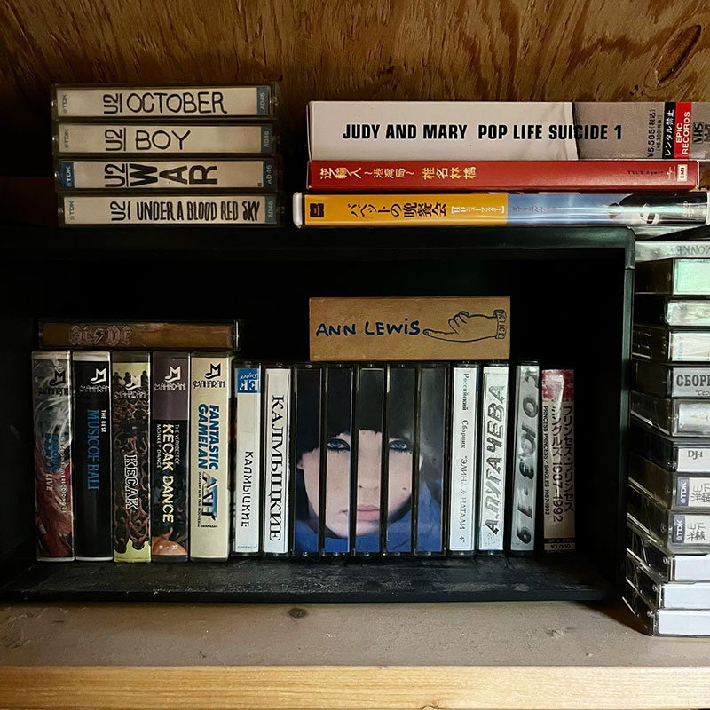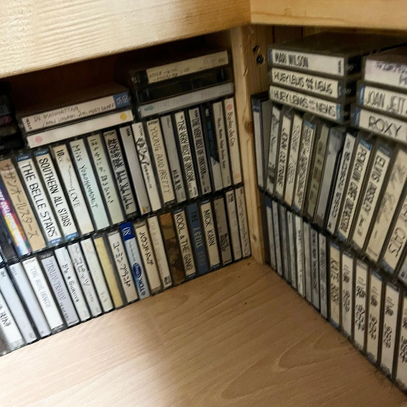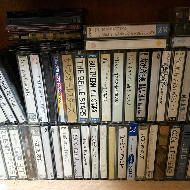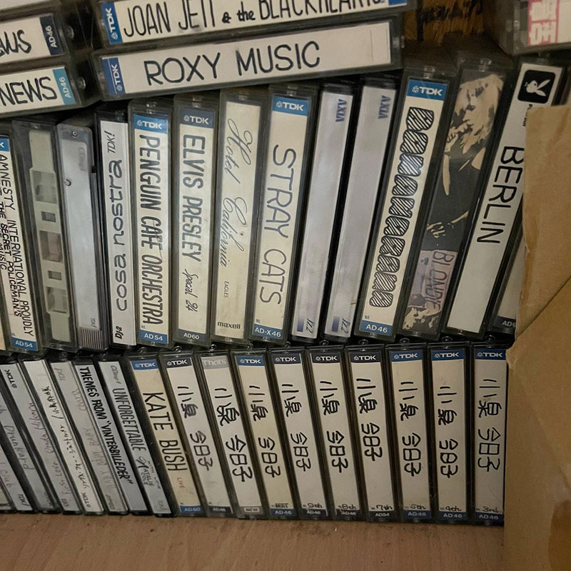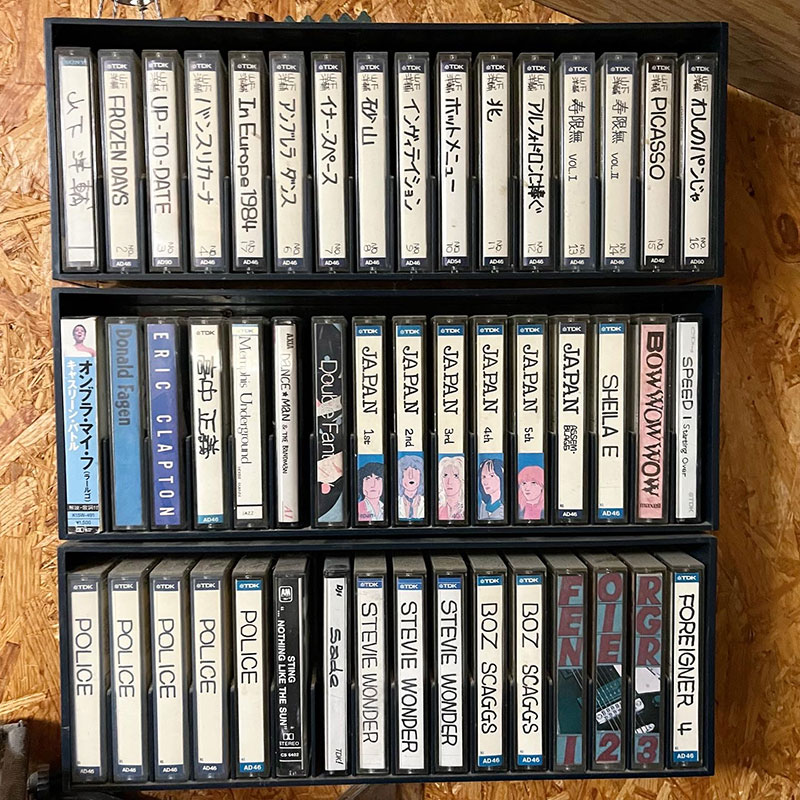 カセットテープ。数100本ある。昔はとてもポピュラーなメディアで録音したカセットテープを誰かにあげるのは日常的な事だった。
