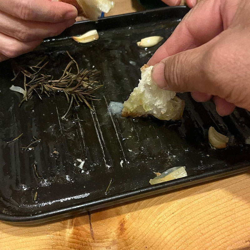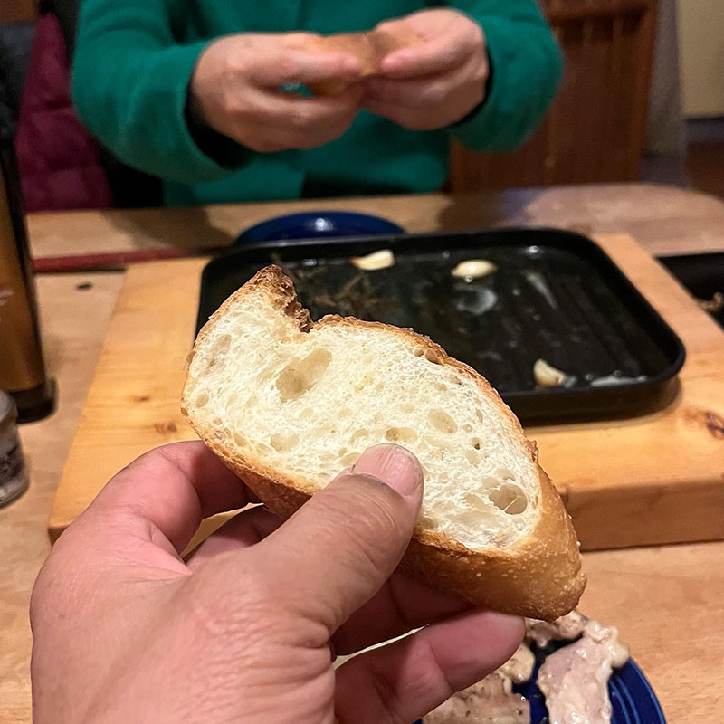 最後に残った旨味たっぷりのオイルやスープをバゲットでぬぐって食べる。