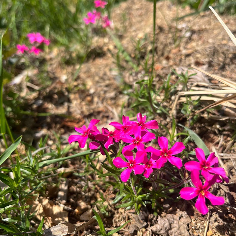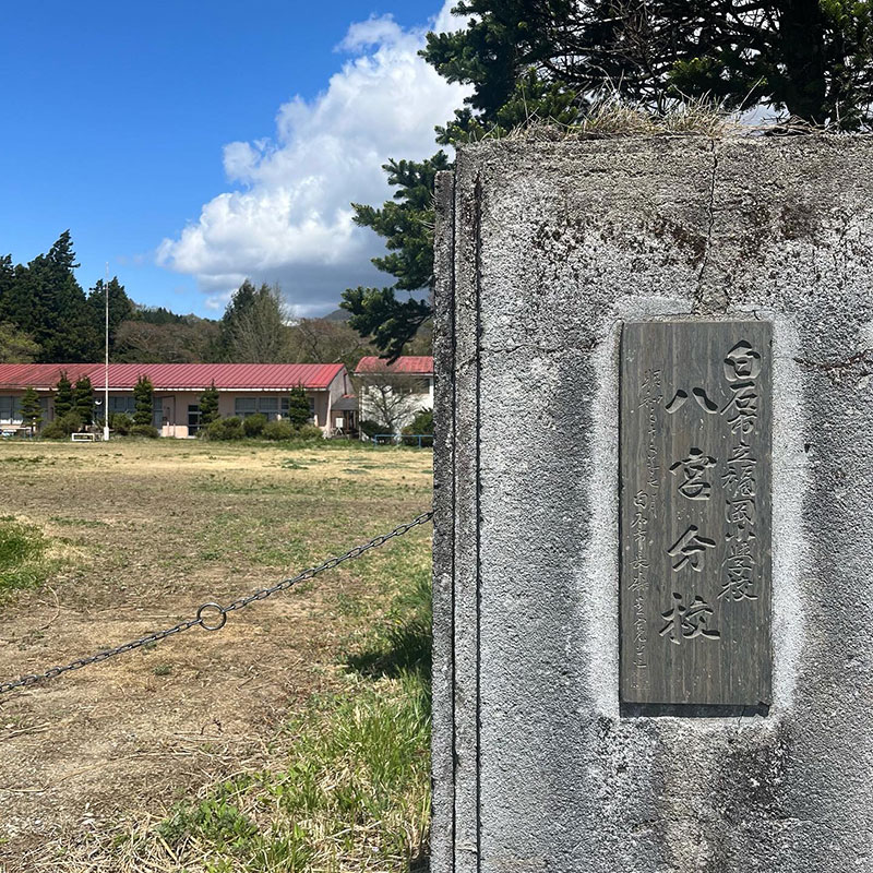 廃校になった山の上の分校の校庭は花でいっぱい。