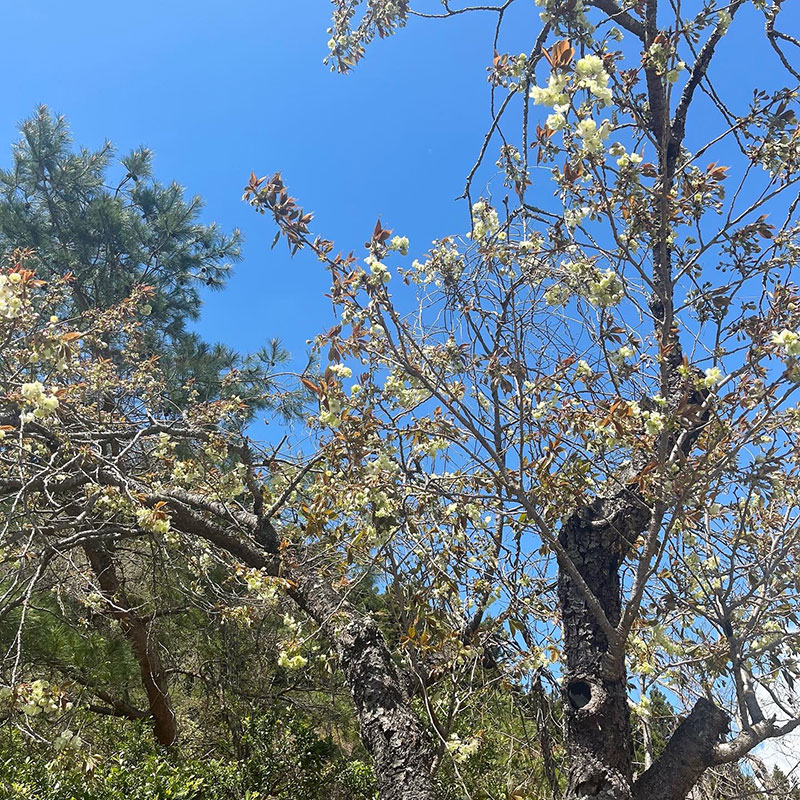 廃校になった山の上の分校に御衣黄桜と