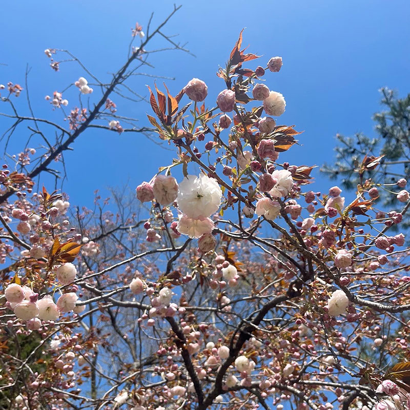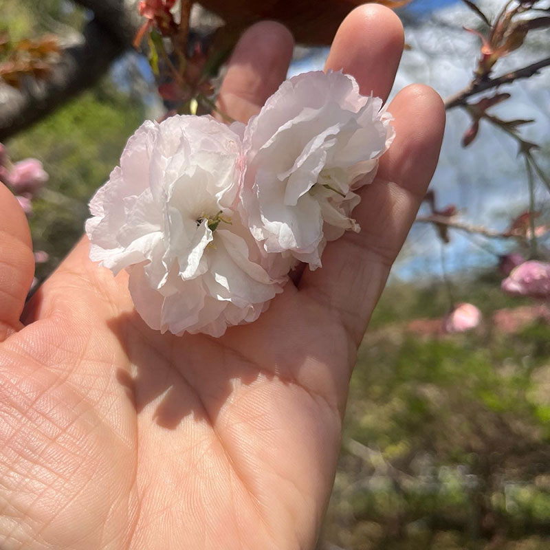 八重桜も白に近いものから