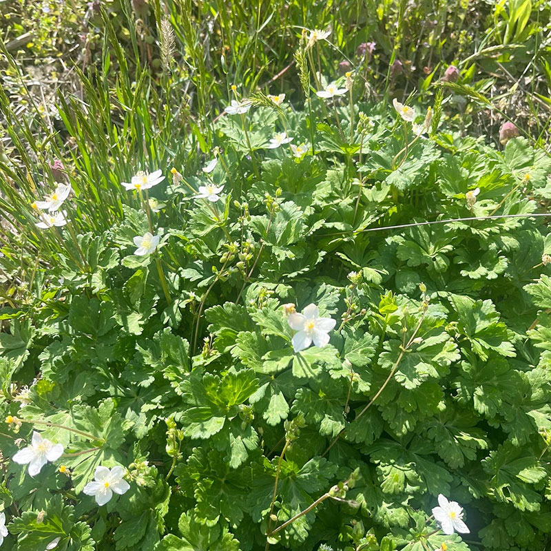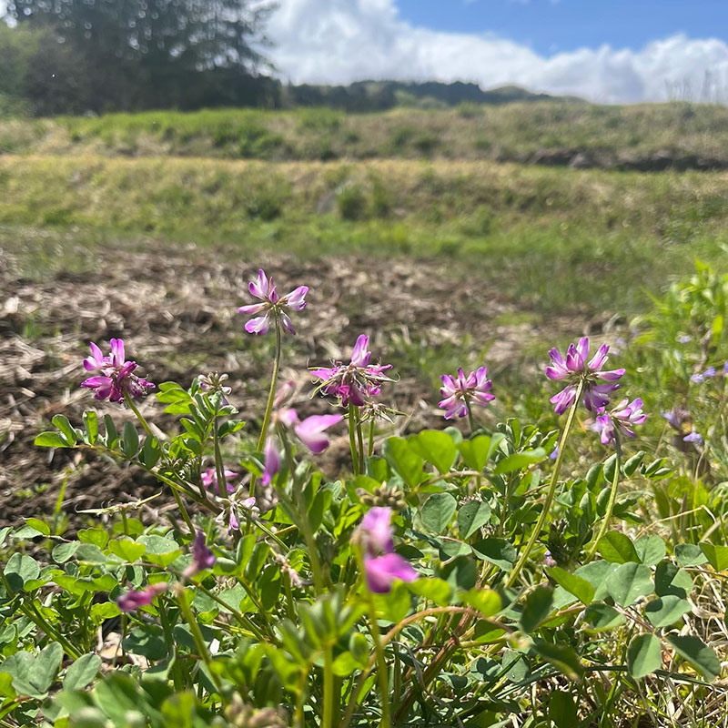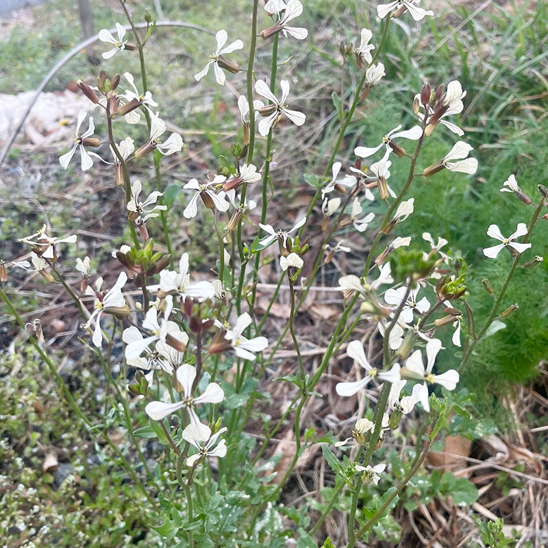 畑のルッコラの花が満開。ルッコラの花は食べられるので散らして