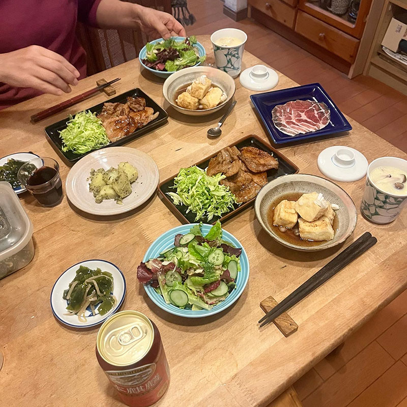 カミさんは豚肉の生姜焼き作ってくれた。