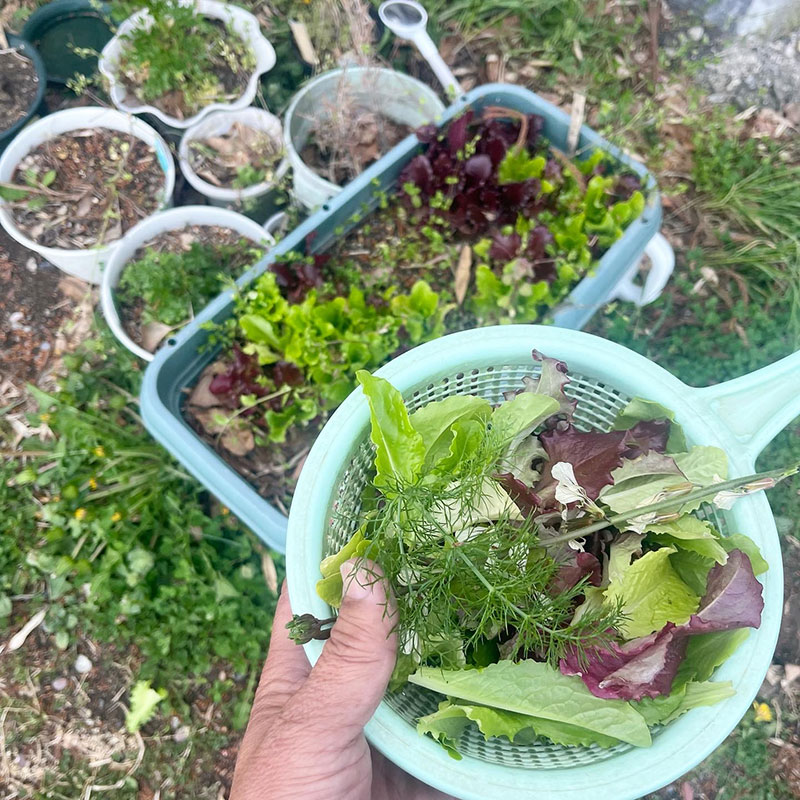 プランターで育ててるサラダ菜を