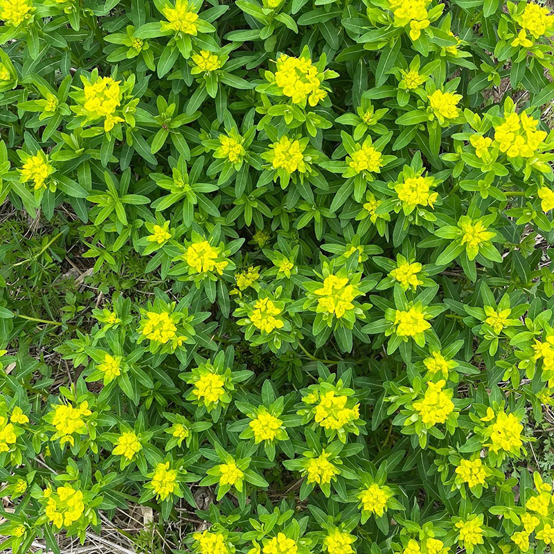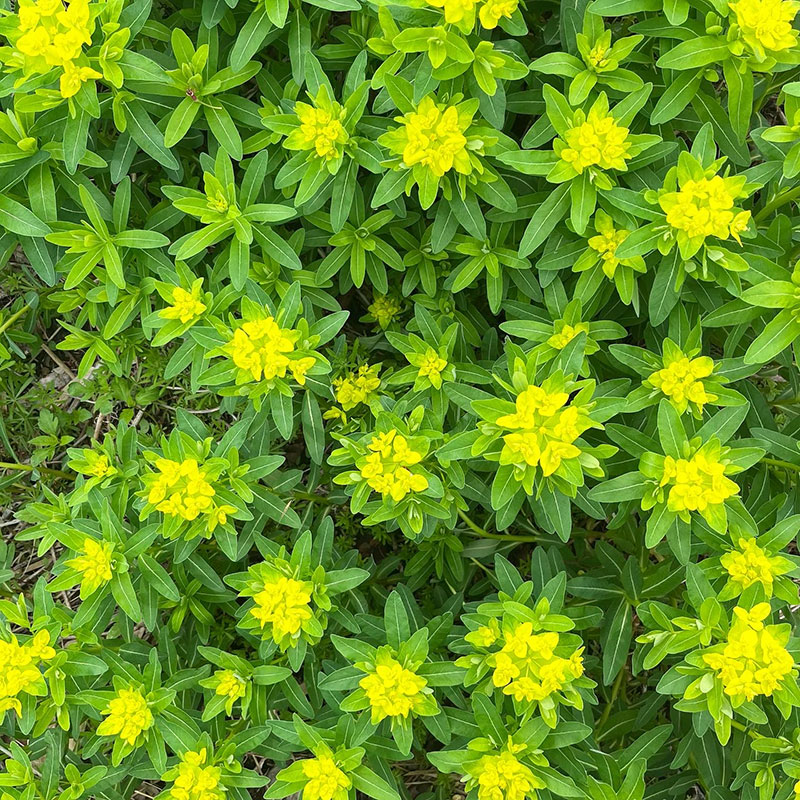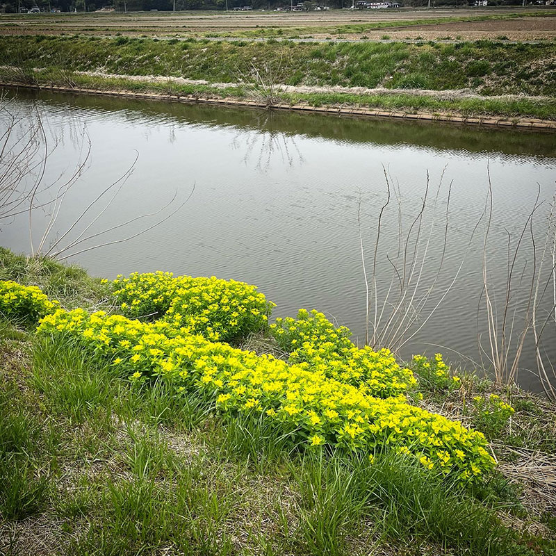 鮮やかな若い緑に花火のように黄色い花が広がる。