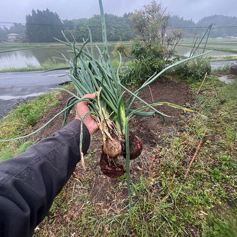 この葉玉ねぎ、実は近所の方にいただいて貯蔵して冬の間食べてた玉ねぎの芽が出てしまったものを畑に埋めてたもの。
