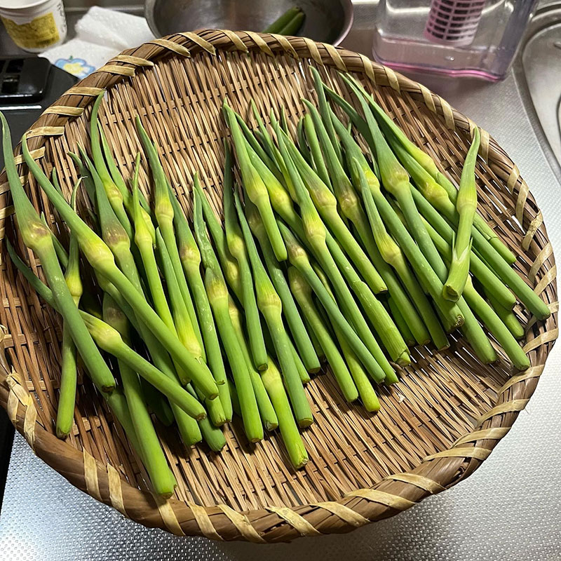 昨日、近所の方にいただいたニンニクのつぼみを