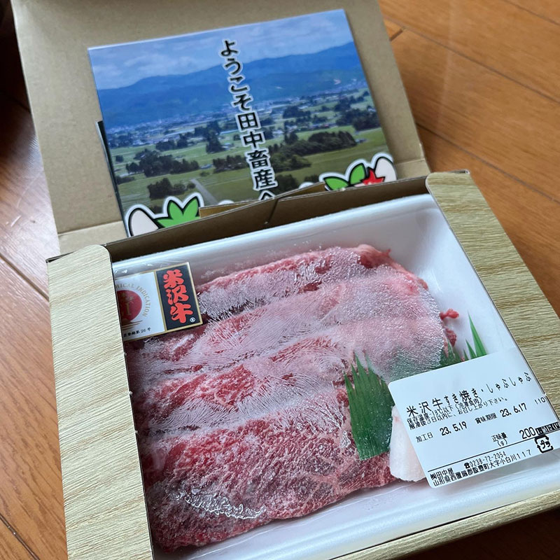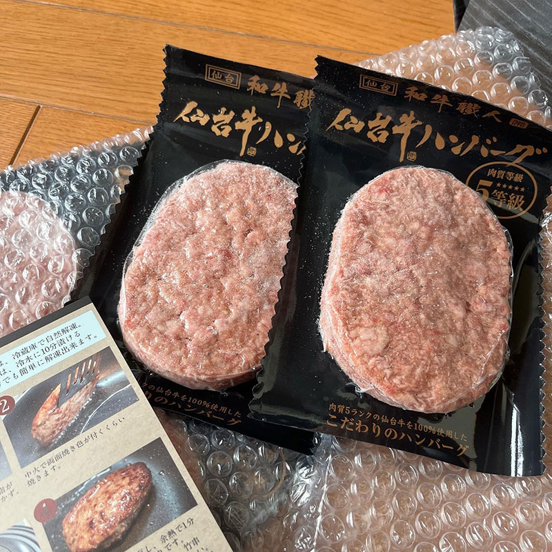 すき焼き、しゃぶしゃぶ用の米沢牛と仙台牛のハンバーグ届いた。