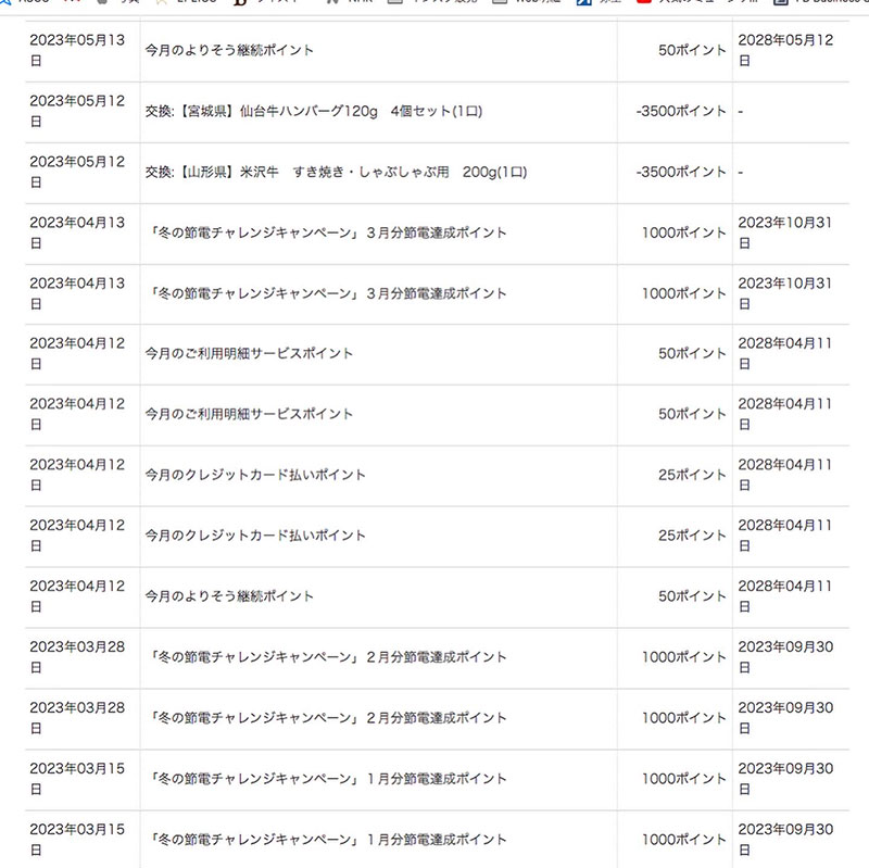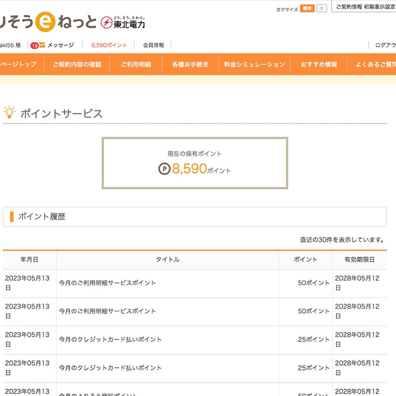 まだポイントある。自宅以外に石彫りの仕事場ではコンプレッサーを回すために動力を契約してるからこんなにポイントがついたのかも。