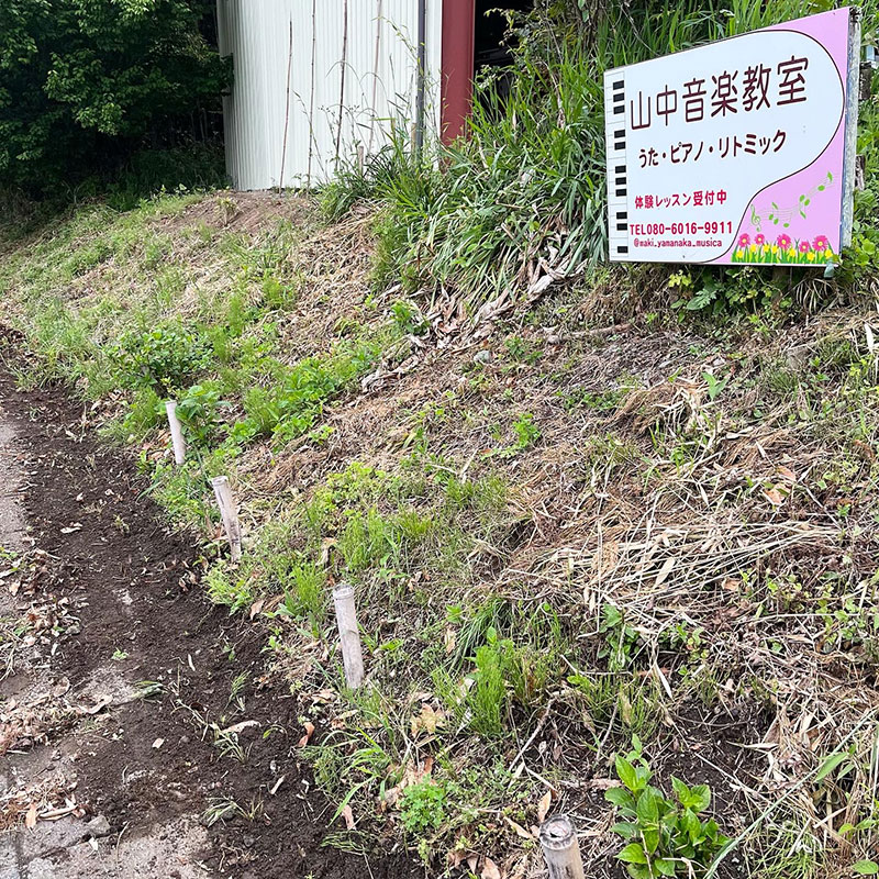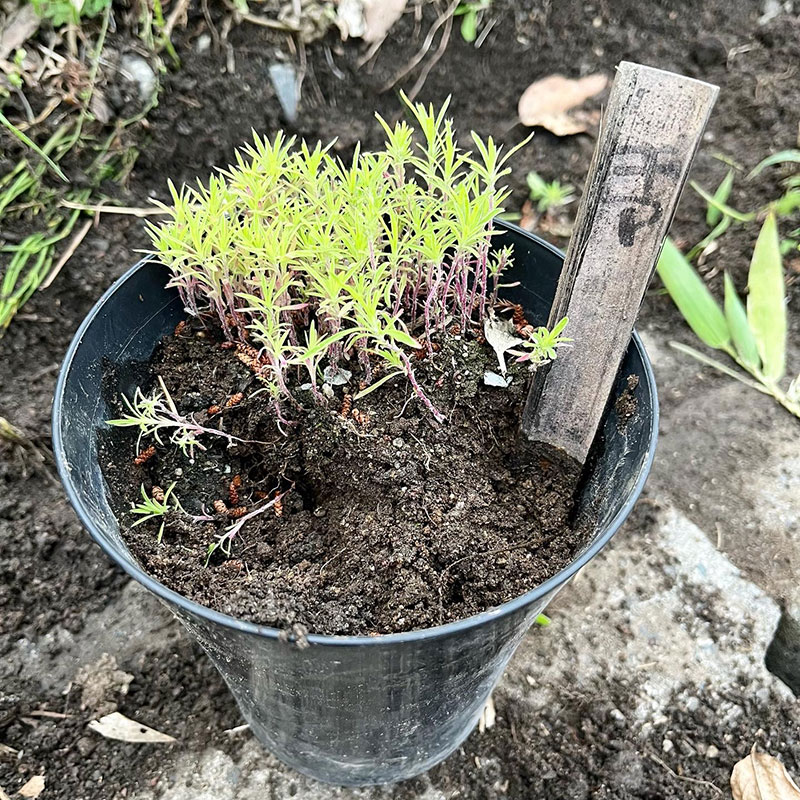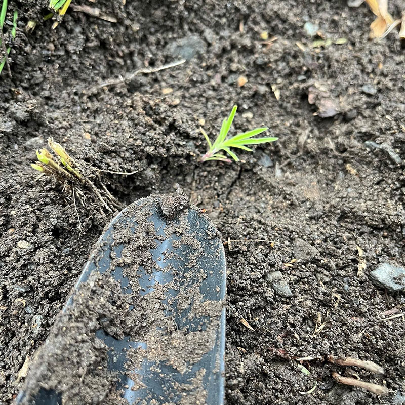 雨で鉢の土も土手も湿ってるのスコップで移植していく。ちょっと乱暴なこんなやり方でもコキアは根付くからすごい。
