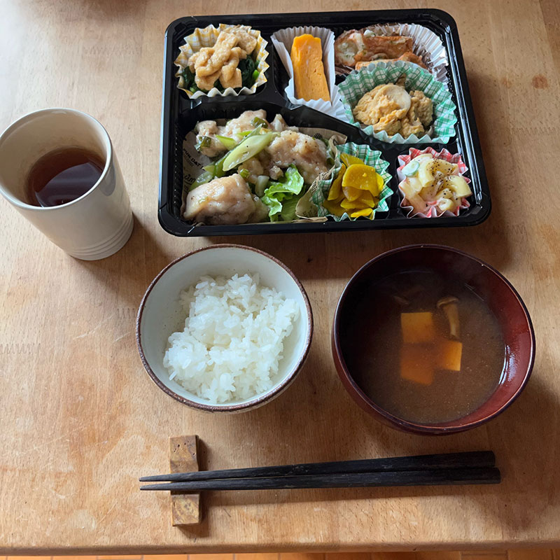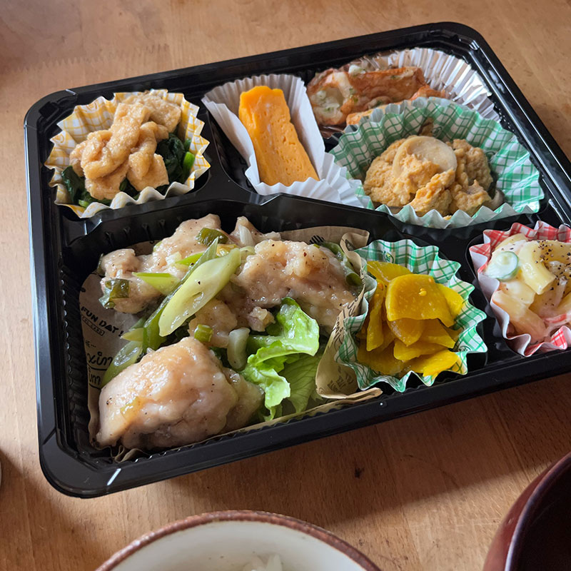 たくさんのおかずの弁当いただいた。(本来、ご飯が入ってるところにもおかず!)
