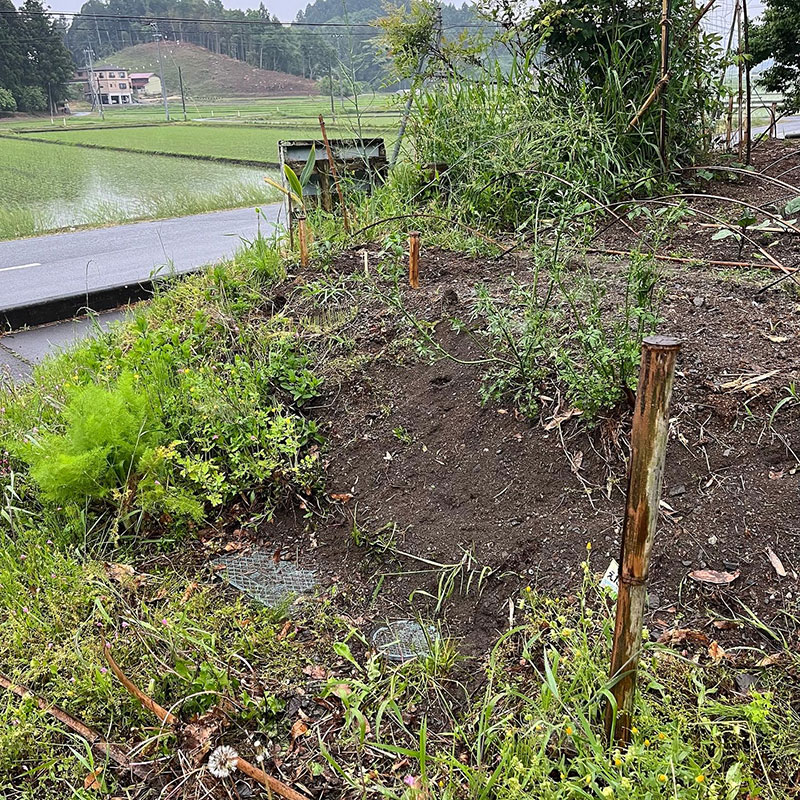 朝、畑の土手に早生の枝豆を撒いた。本当に畑が小さくて枝豆の種をまくスペースが無いので