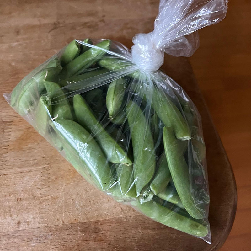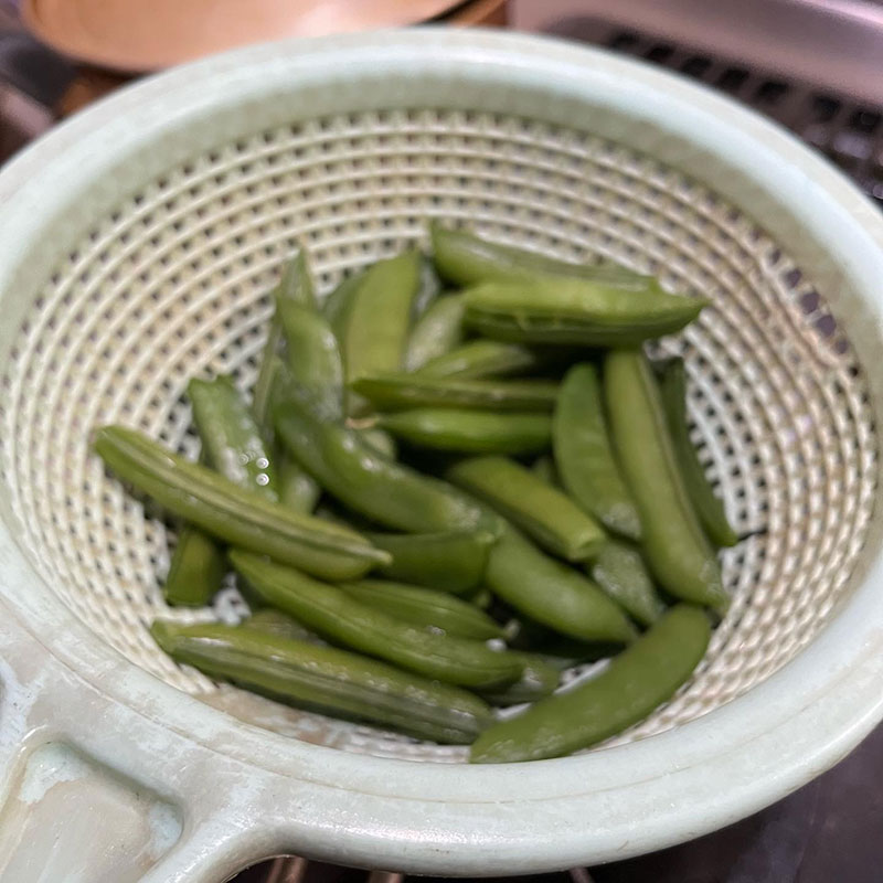 採りたての絹さや、塩もマヨネーズも何もいらない。味が濃い。甘い。(ってピンボケだ)