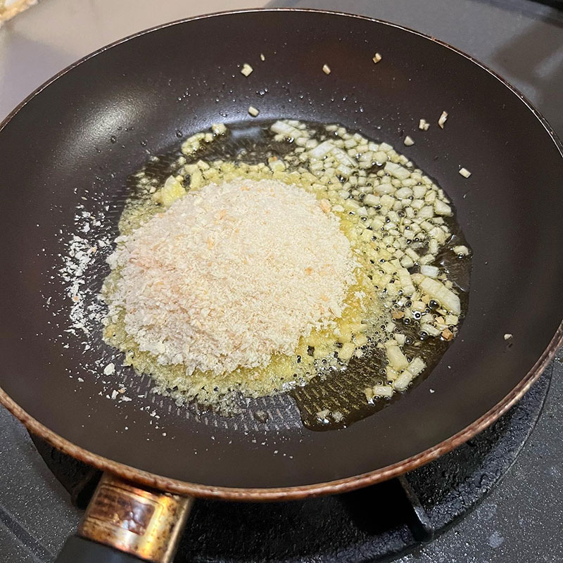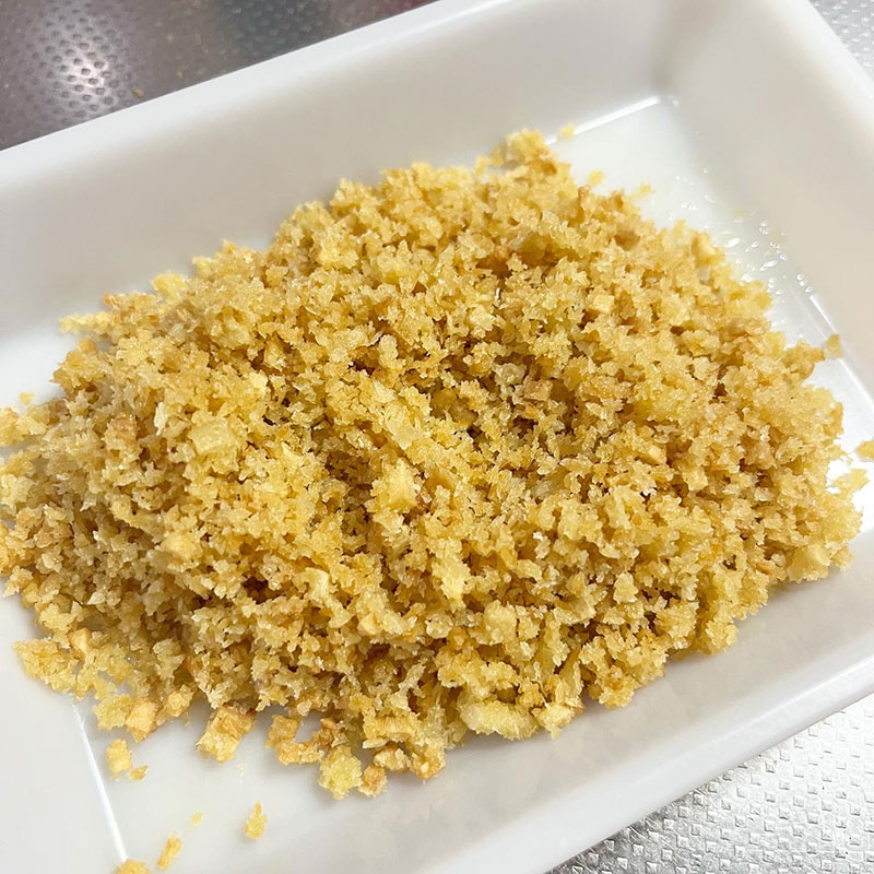 にんにくパン粉作った。小さな新玉ねぎのスープを大量に仕込んだので味変用のふりかけ。これ、パスタやサラダにかけてもすごく美味しい。