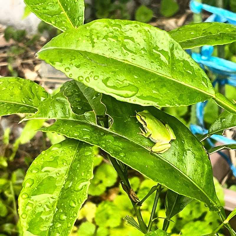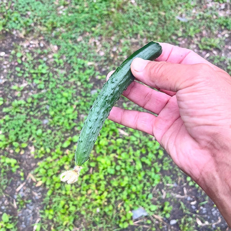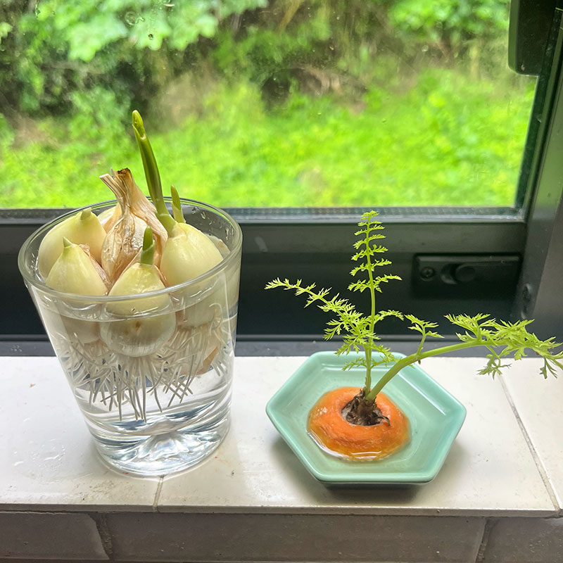 今朝のキッチンガーデン。にんにくの成長の速さよ。