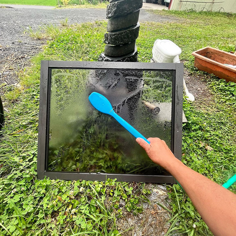 気合いを入れて今朝、網戸とガラス窓外して大掃除。