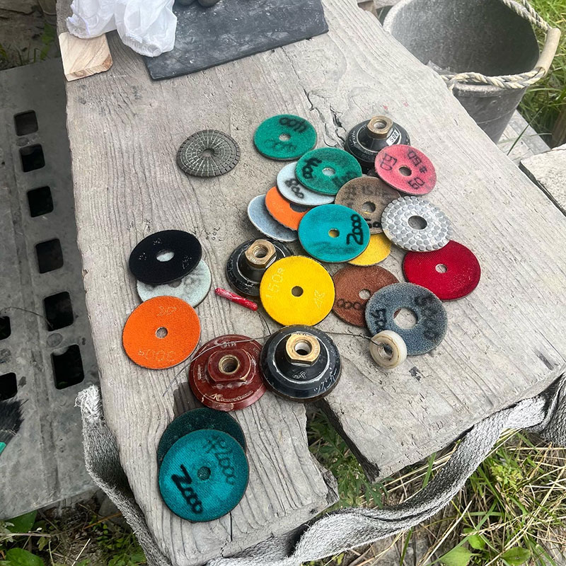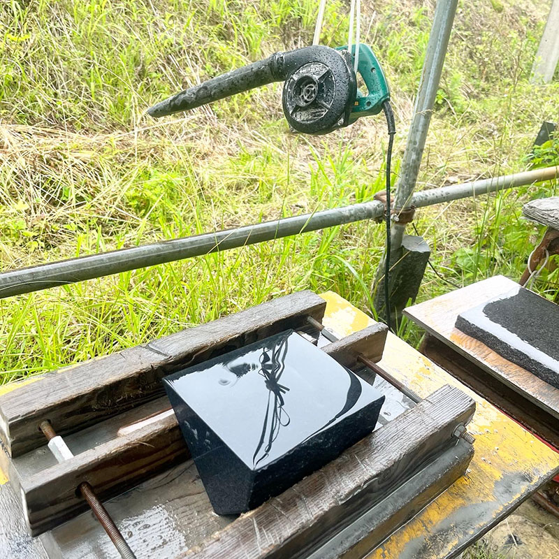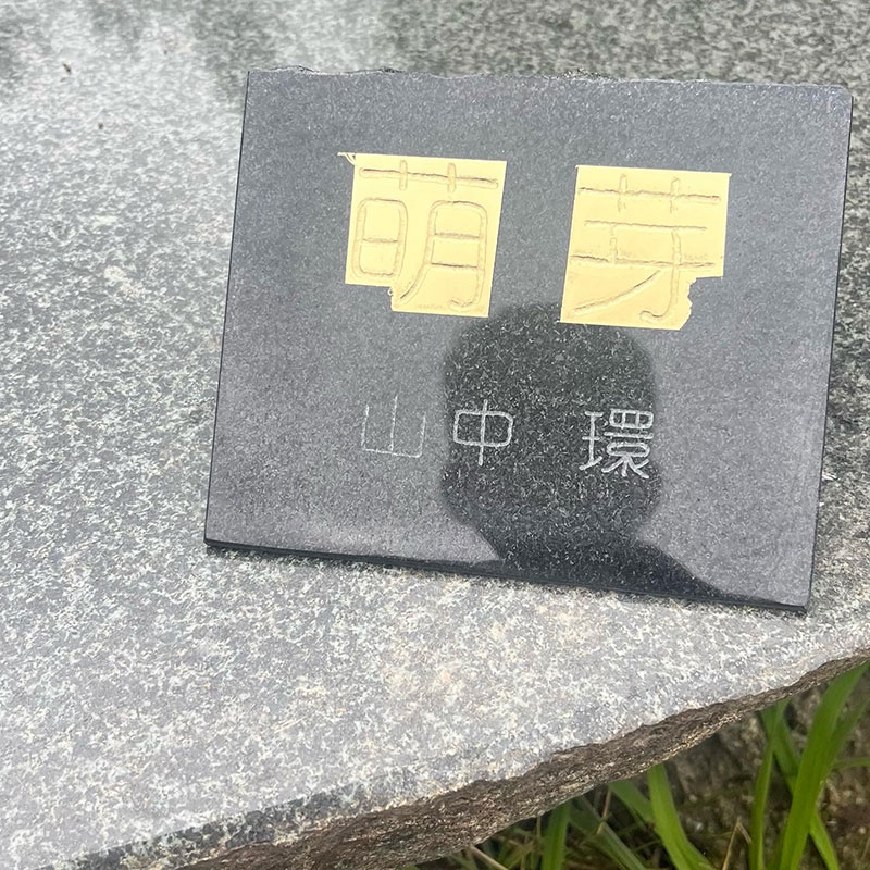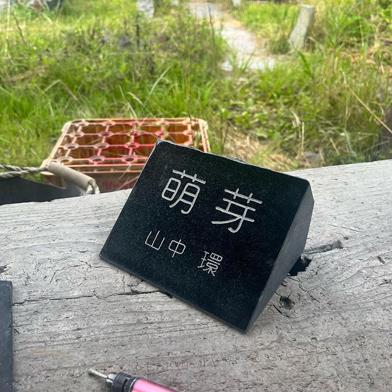先日、地元のギャラリー「アートスペース 無可有の郷」の花でいっぱいの庭に石彫作品を置いていただいた。