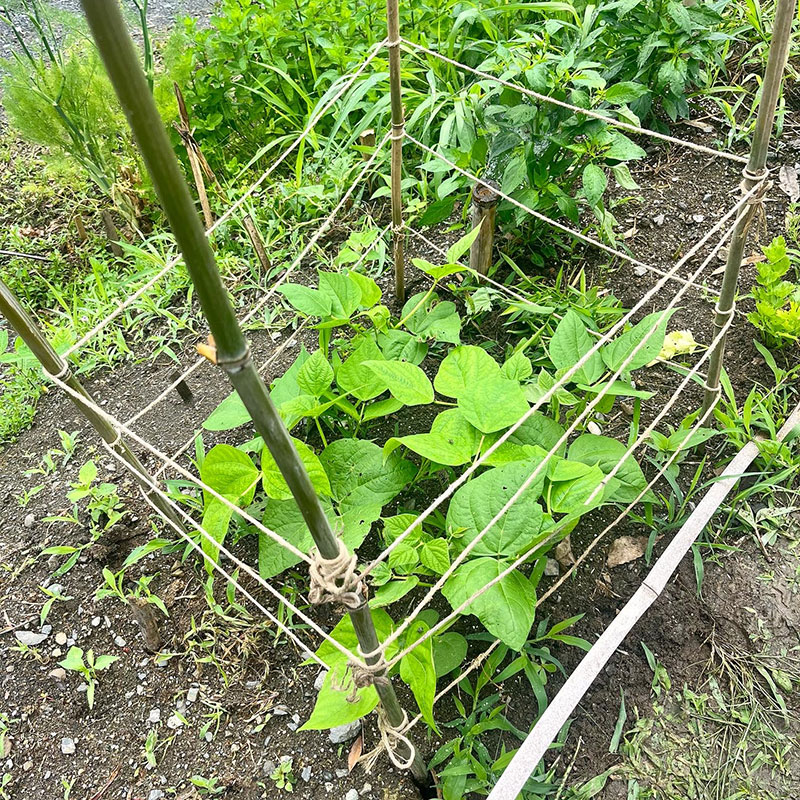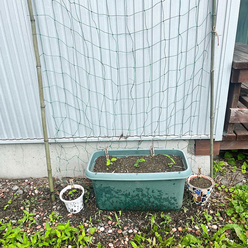 玄関前のプランター。手前、ひよこ豆。奥、レンズ豆。