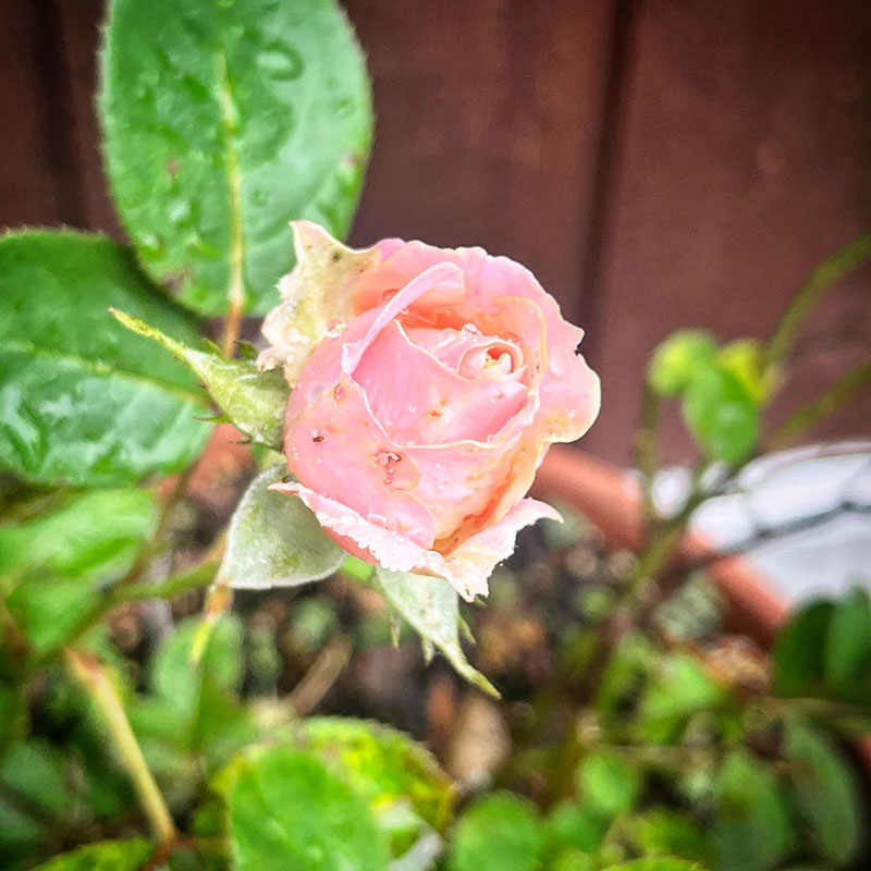 切り戻した枝も挿し木にしようと、腐葉土+バーミキュライト+赤玉土を混ぜたバケツに挿して根出中。こちらもまだしおれてない。一緒に挿した紫陽花と脇芽かきしたミニトマトも。しっかり根を出しておくれ(これ苦手作業)