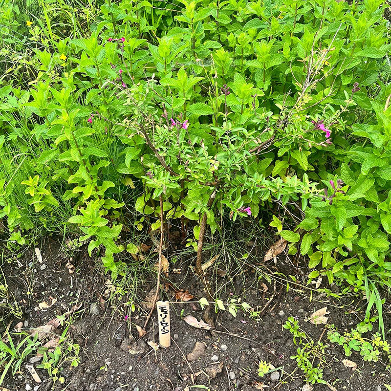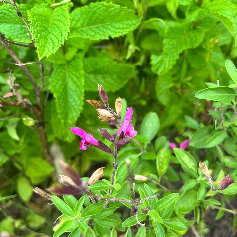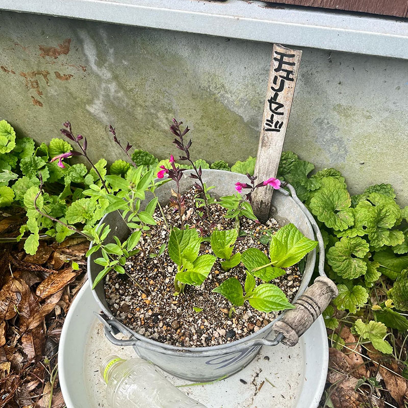 3日前に植え替えをしたチェリーセージ。枯れずに立ってる。植え替えの後、雨がちだったのも幸いしたか?