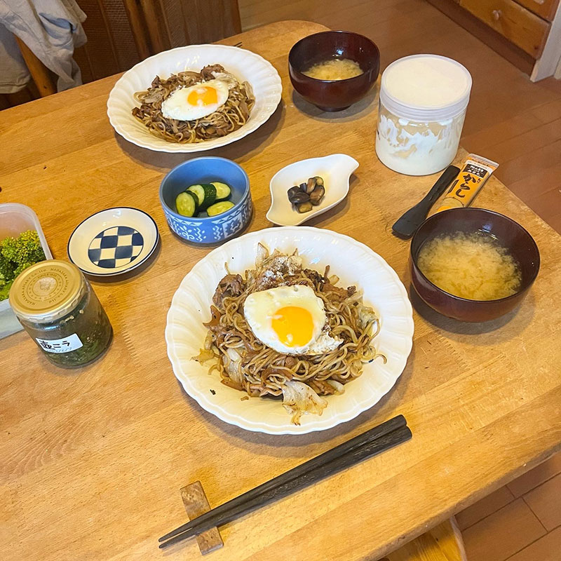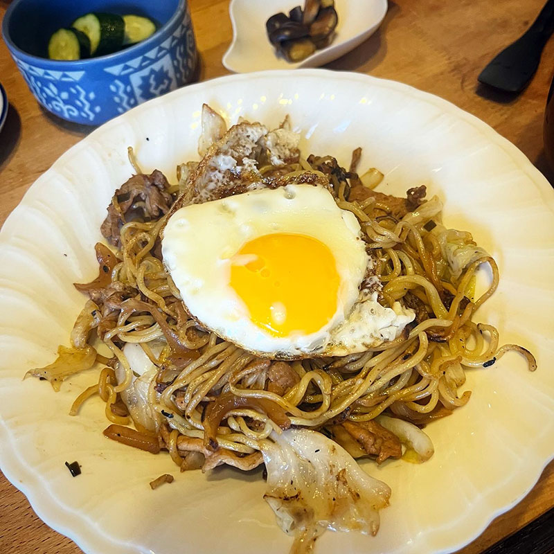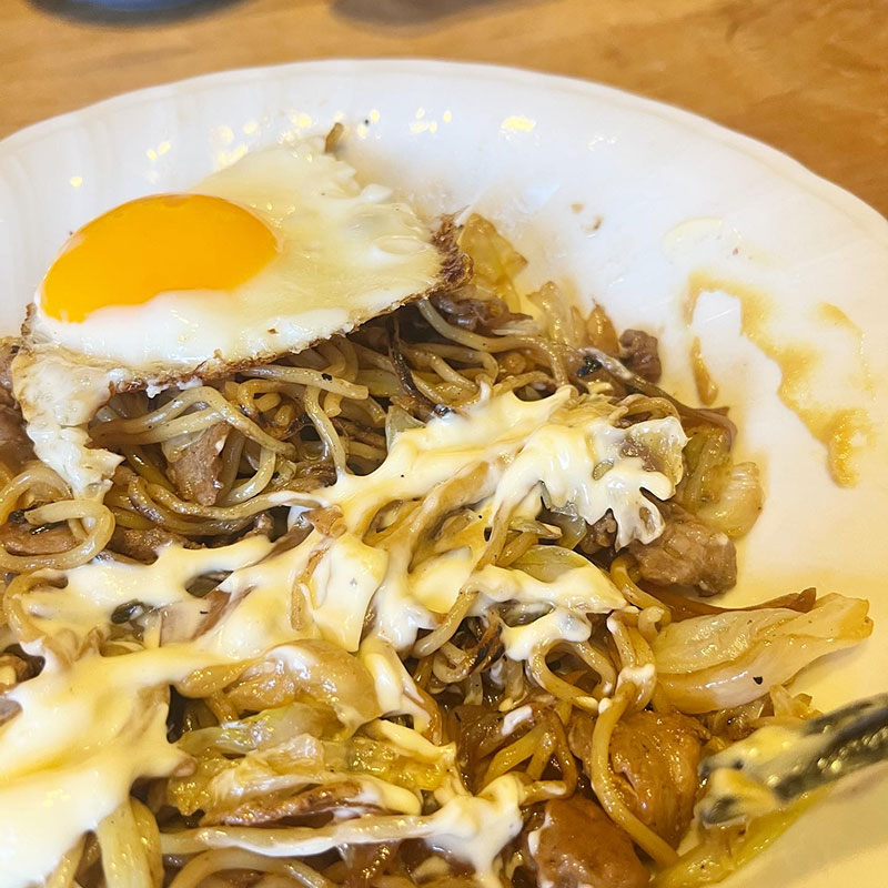 横手やきそばの様に目玉焼きは乗せないと寂しい。