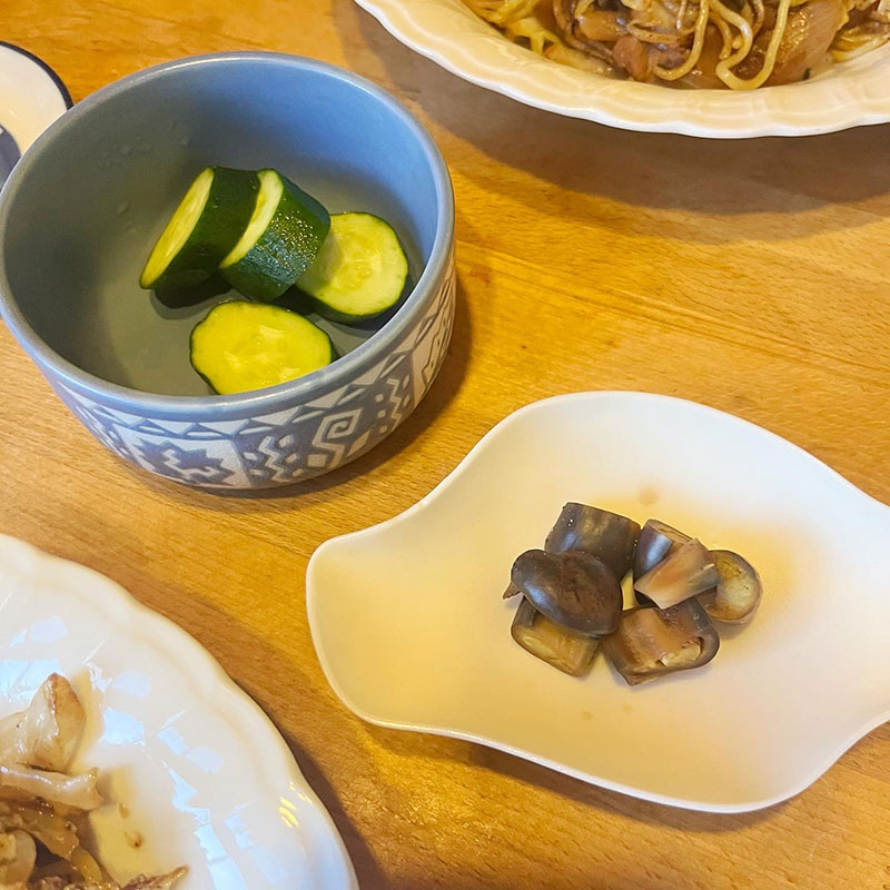 今朝、収穫した茄子ときゅうりのぬか漬け。