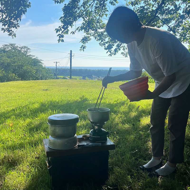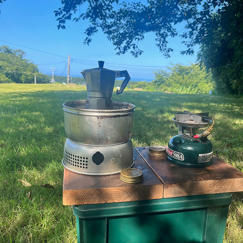 カフェ橙で買ったコーヒーを挽いて持ってきた。トランギアアルコールバーナーでエスプレッソ。