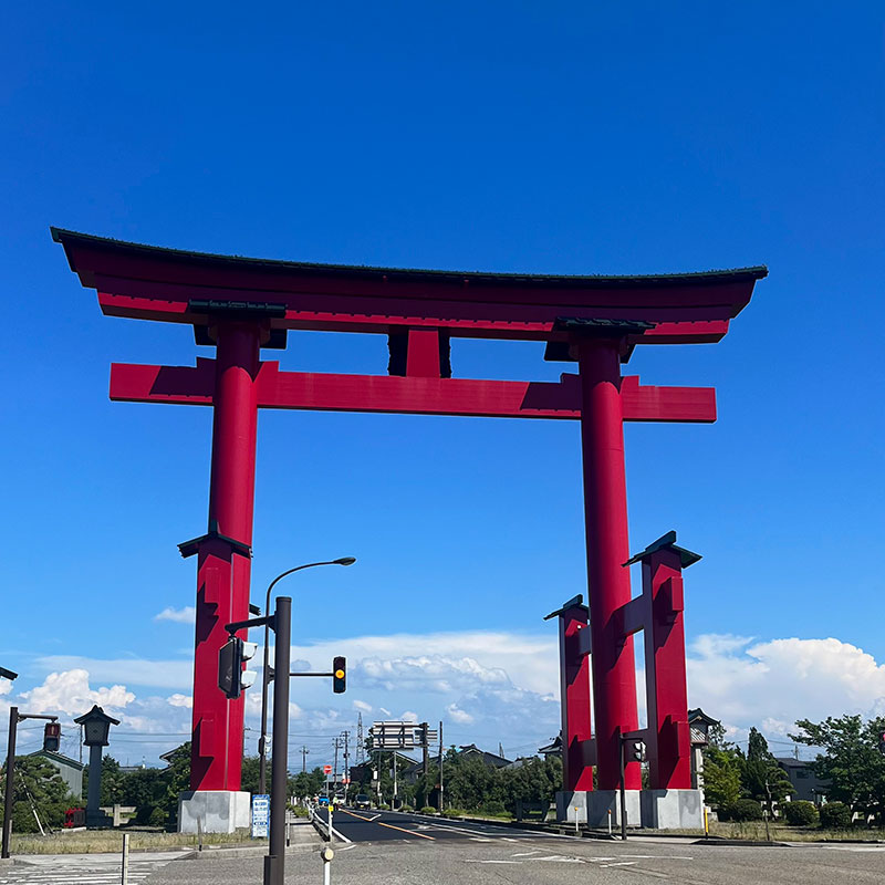 彌彦神社の大鳥居。高さ30m、両部鳥居として日本一の大きさ。