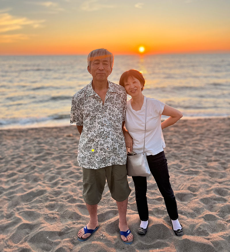 海でキャッキャ言いながらじゃれあっていた高校生のカップルが「おふたり素敵だから写真撮ります」ってわざわざ来てくれたので撮ってもらった・照