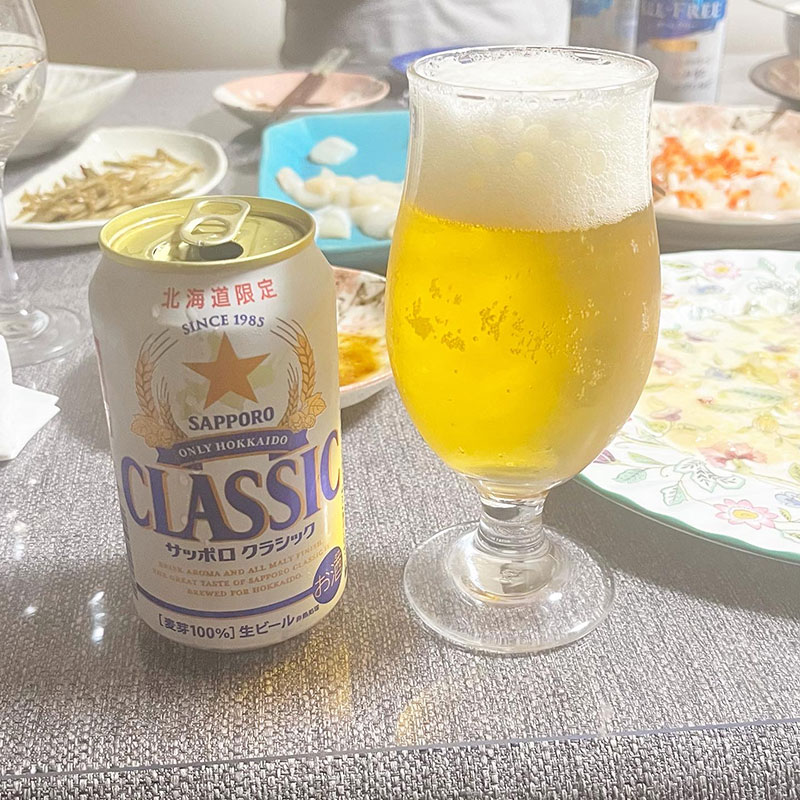 乾杯のスパークリングワインにビールはサッポロクラシックと
