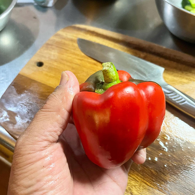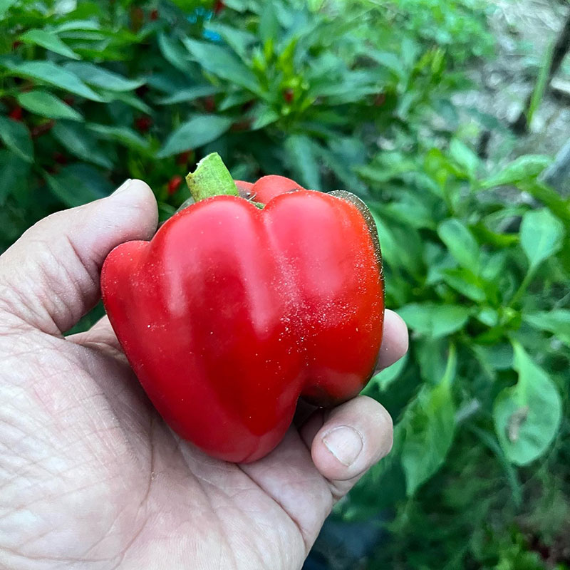 畑の赤パプリカが間に合ったのが嬉しい。赤く熟すまでかなり日数がかかるのでいつも間に合わない。