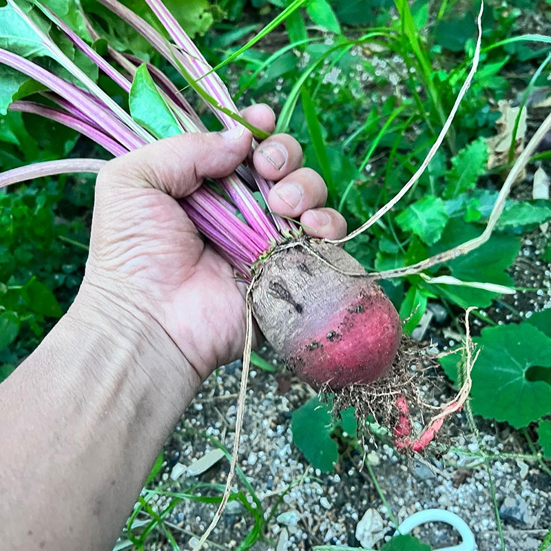 畑のビーツが時期なので収穫。夏採りは今年初めて収穫できた。3つも。