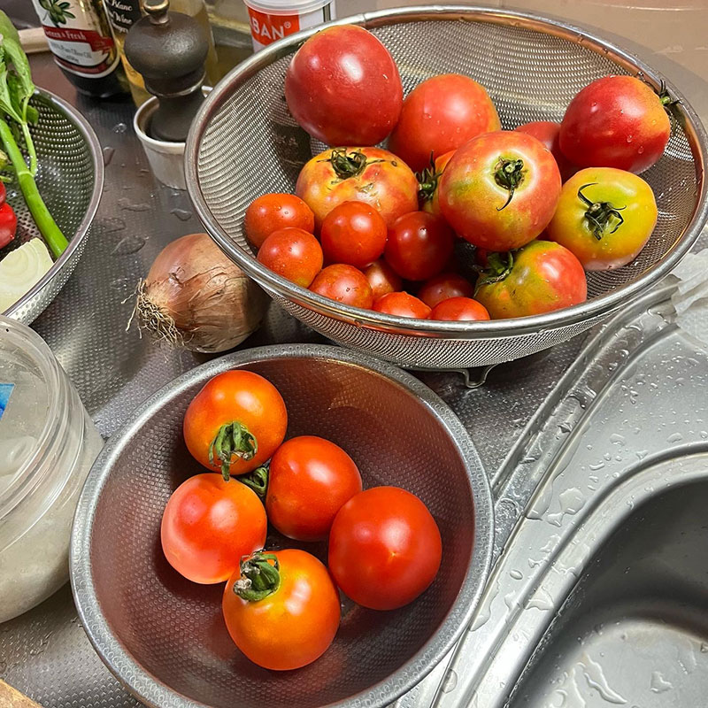 トマトは大玉、中玉からミニトマトまで何種類も混ぜた。