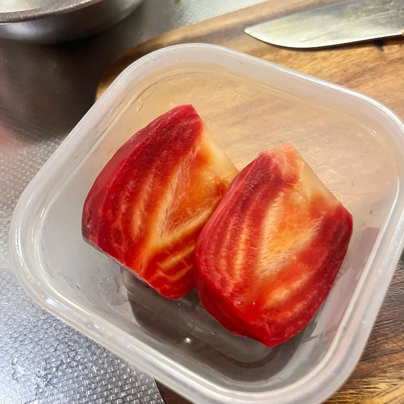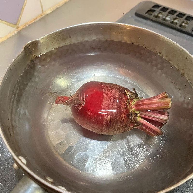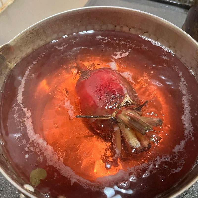 その間に明日作るボルシチのために採ったばかりのビーツ下茹でしておく。