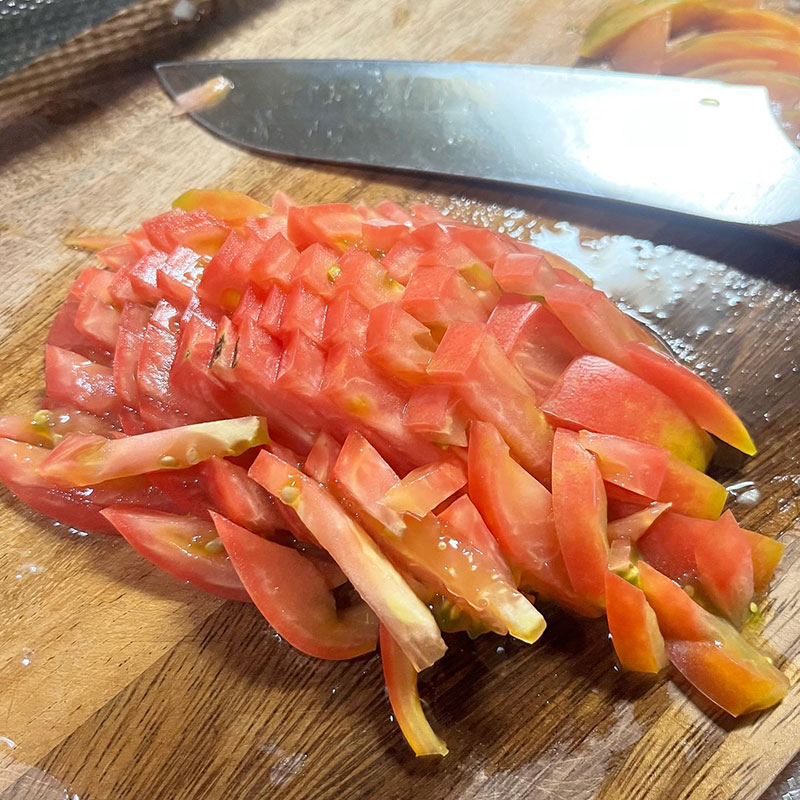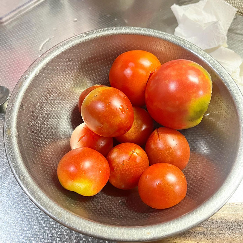 切る手間は増えるけどミニトマトが入るとコクが増す。