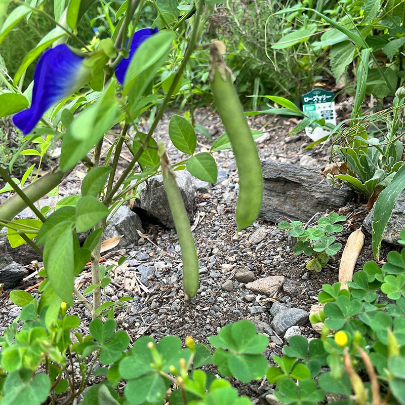 プランターで育ててるのからだけ花をとってこちらは取らずに来年に種を繋げる。さやもたくさんついてる。