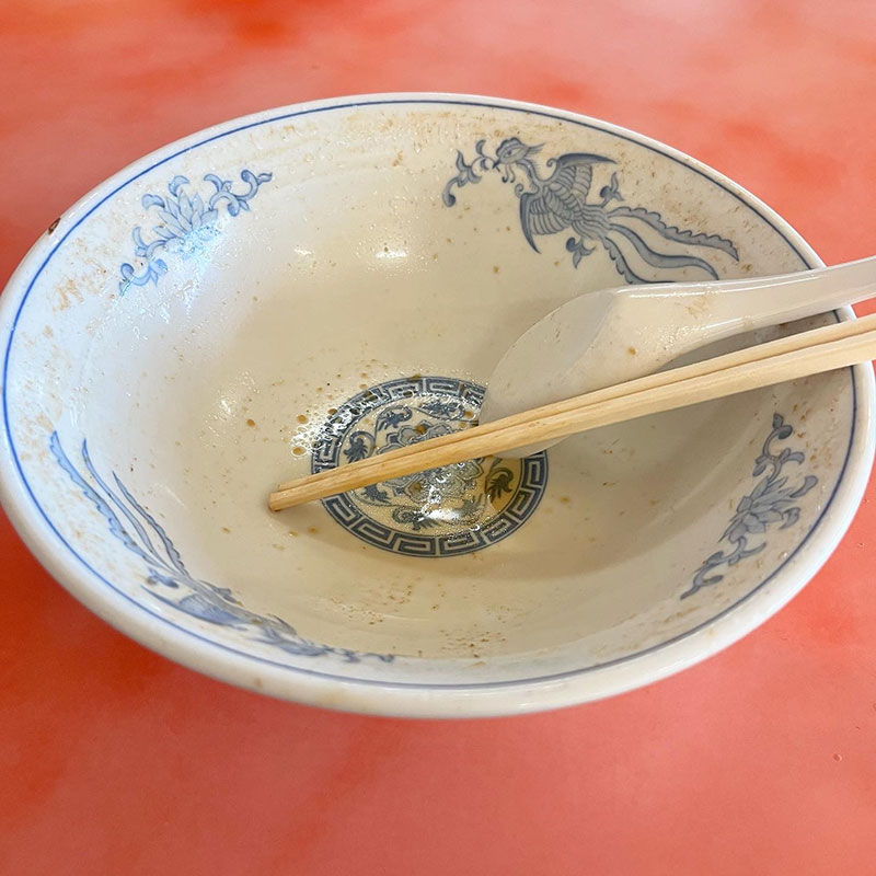 個性的な硬めの麺の歯応えが無かったので帰り際にご主人に「麺、変えました?」って聞いたら「この暑さで麺が締まってしまうんです」だって。この夏の連日の異常な暑さは麺の食感まで変えてしまっていた。てかご主人もおカミさんも痩せてた。この猛暑の中、毎日火の前に立つなんて本当に大変な仕事だ。いつもの様にスープも一滴残らずいただきました。ごちそうさま。