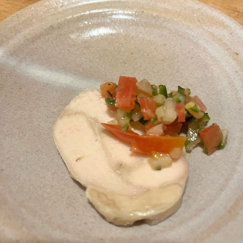 畑のハラペーニョで作ったサルサソース乗せて。柔らかくて美味しい。