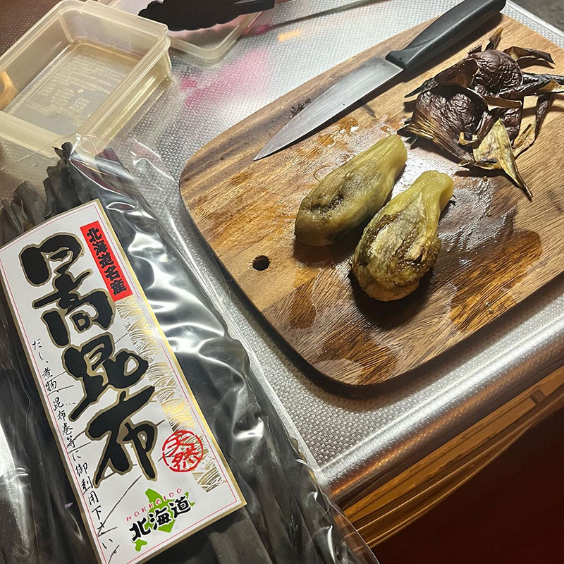 焼き茄子の昆布〆を塩で食べると美味しいらしい。ちょうど良い日高昆布があったので。明日の夕食が楽しみだ。