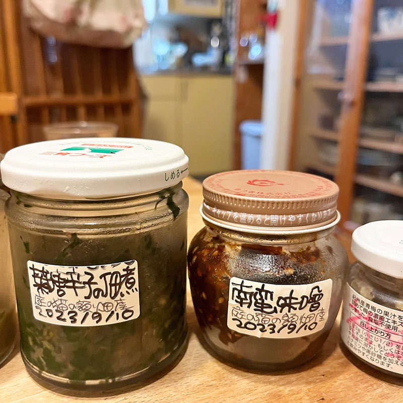 先日、畑の赤唐辛子を一株倒して葉唐辛子の佃煮と南蛮味噌を仕込んだ。