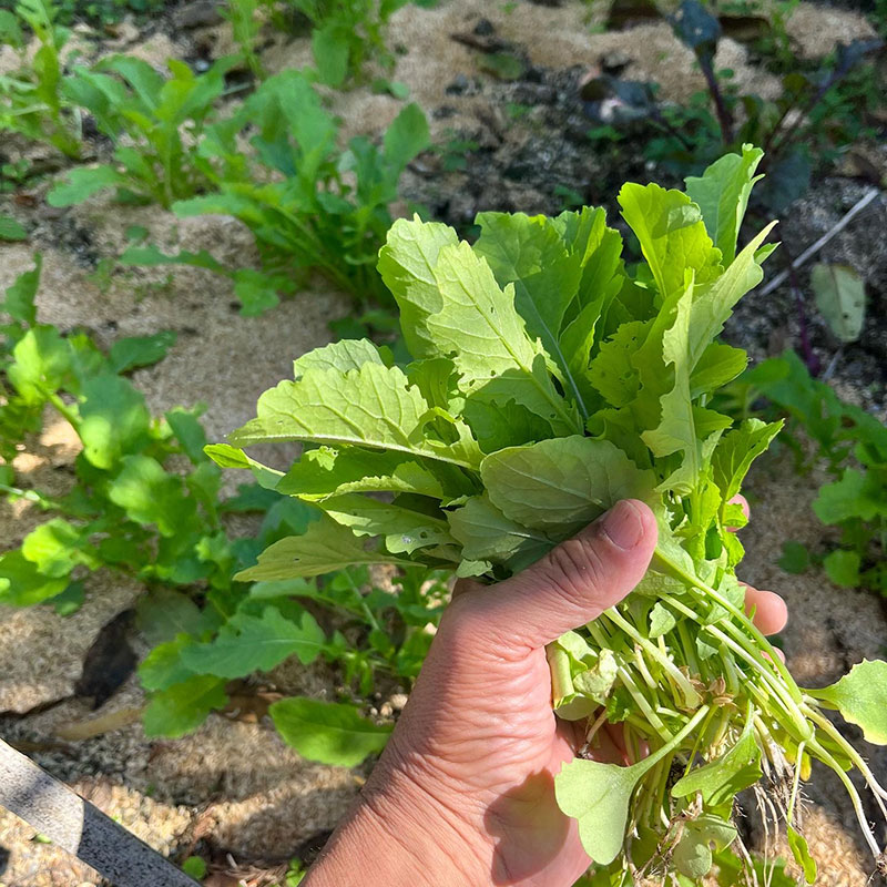 畑で間引いた大根を