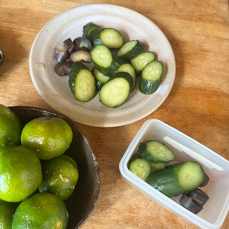 きゅうりと畑の茄子のぬか漬け。