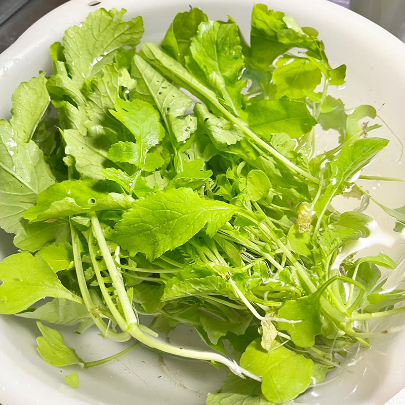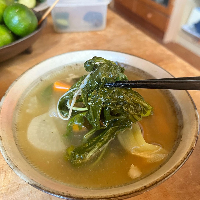 畑で間引きした大根葉のおひたしが美味しすぎ。あわ漬けと鰹節のお陰もあるけど。