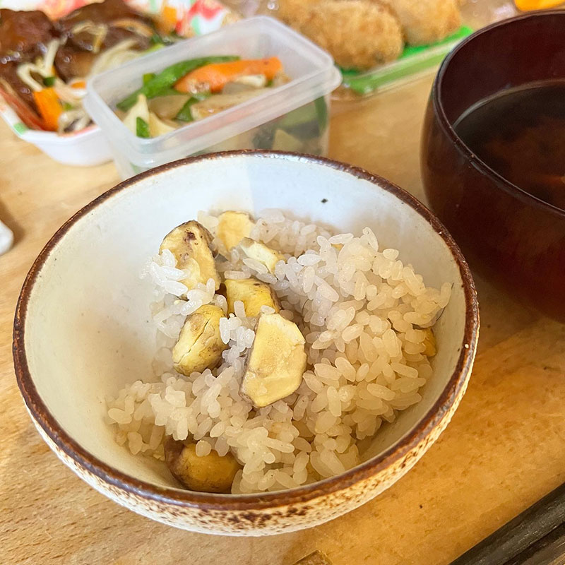 栗ご飯の昼飯。