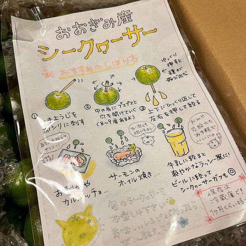 なんて嬉しい贈り物。我が家では調味料としてシークワーサーを常備してる。この夏はサルサソースにも使った。スーパーの焼き魚が塩っぱかった時もシークワーサーかけるとあら、不思議。塩っぱさが消える。