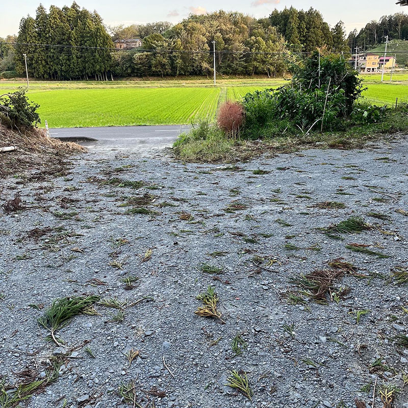 家の前の田んぼ。田植えしたわけじゃ無いよ。秋になってもいつまでも暖かく稲刈りした後の株の葉が伸び稲が再生してる。辺り一面緑。