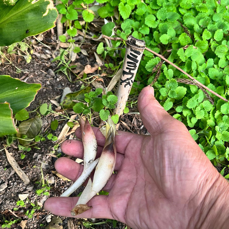 露地に植えたミョウガ。