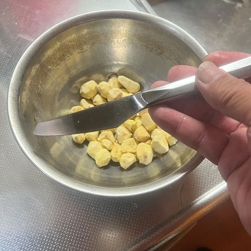 包丁を使う勇気はないので食事に使うナイフでやってみた。