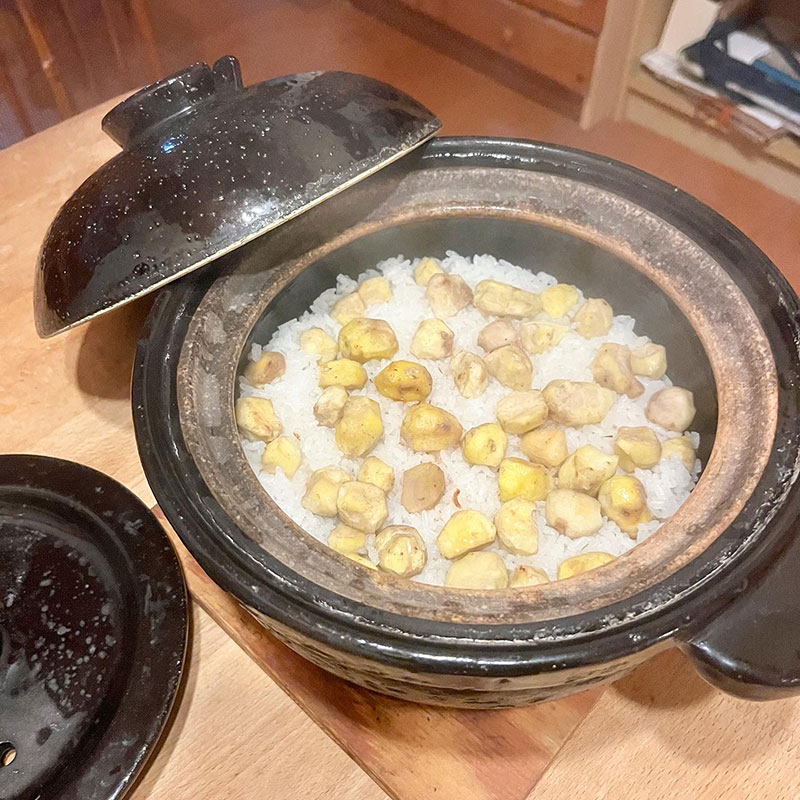 山栗をいただいたので今シーズン2回目の栗ご飯炊く。