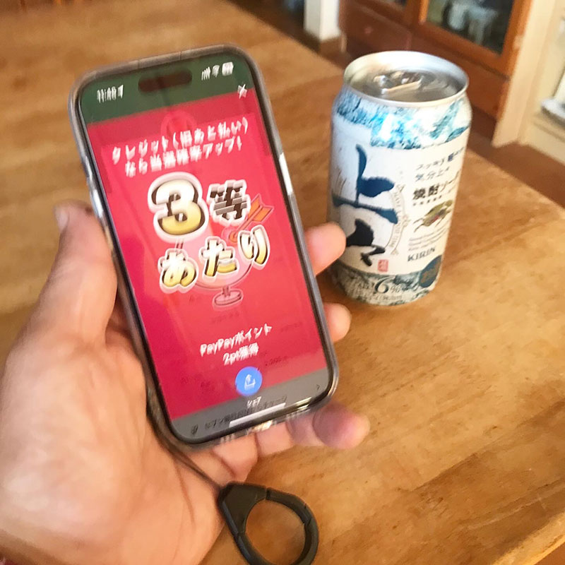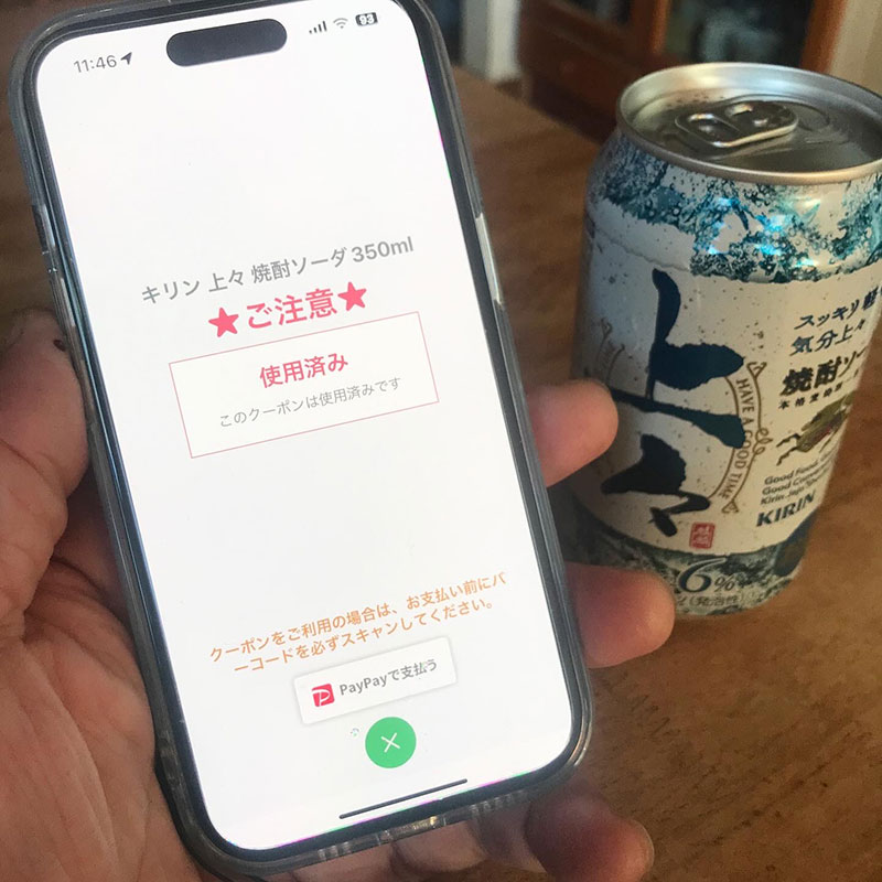セブンイレブンアプリで KIRINのスッキリ軽やか気分上々 焼酎ソーダ一本もらった。